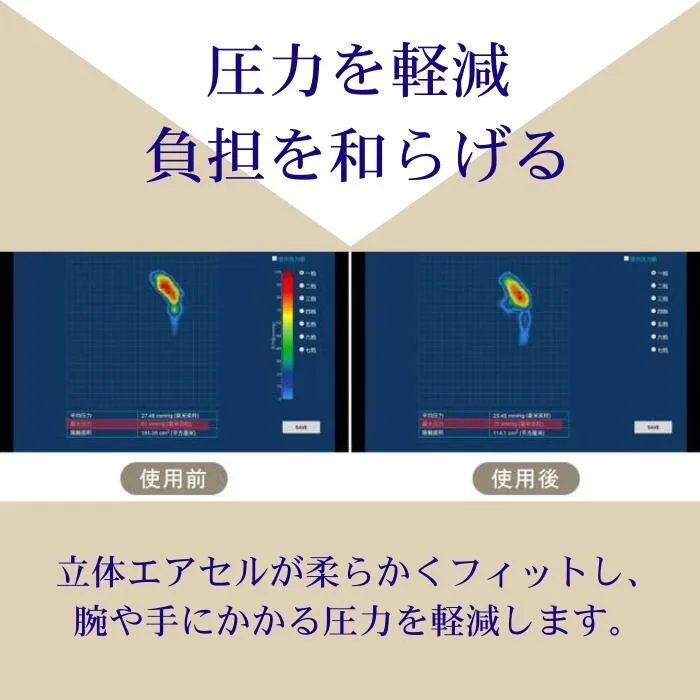 コンパクトなサイズながら、特許技術のエアセル構造が内部に採用されており、しっかりと圧力を分散。