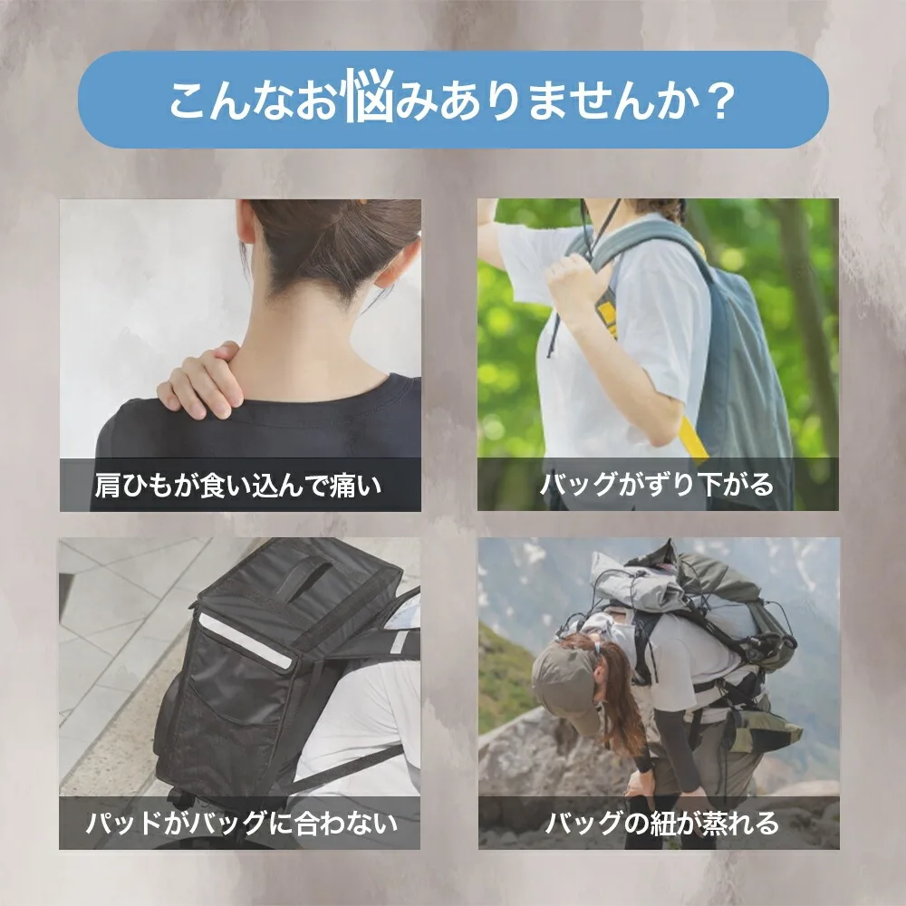 特許取得済のエアセル構造が、肩にかかる荷重を広範囲に分散。